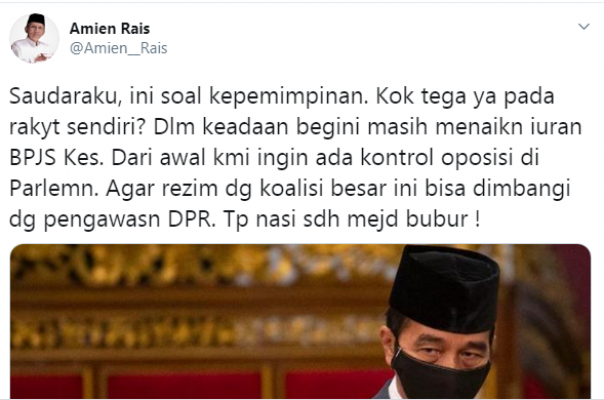 Amien Rais: Kok Tega Sama Rakyat Sendiri, Menaikan Iuran BPJS saat Pandemi