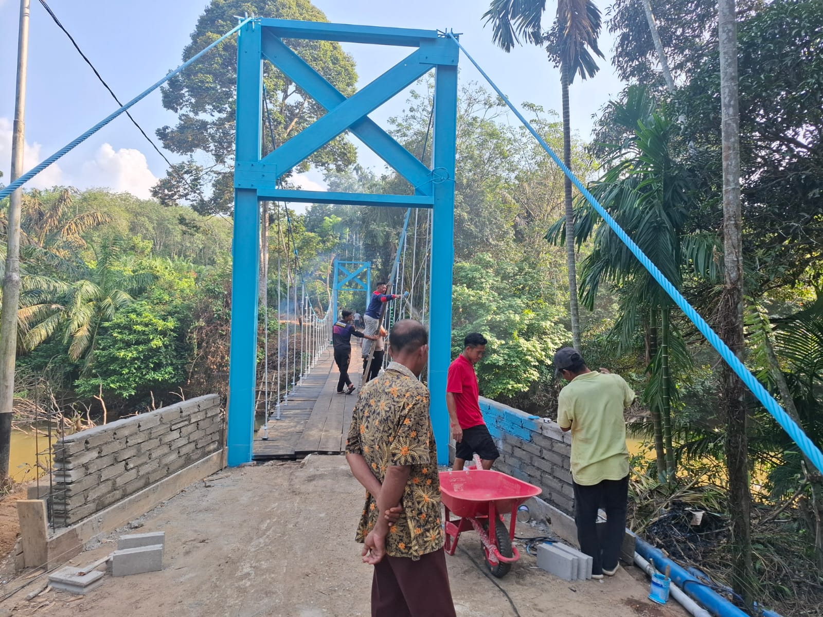 Wujudkan Kemudahan Aksessibilitas, Polsek Rambah Hilir dan Masyarakat Renovasi Jembatan Tanjung Betung